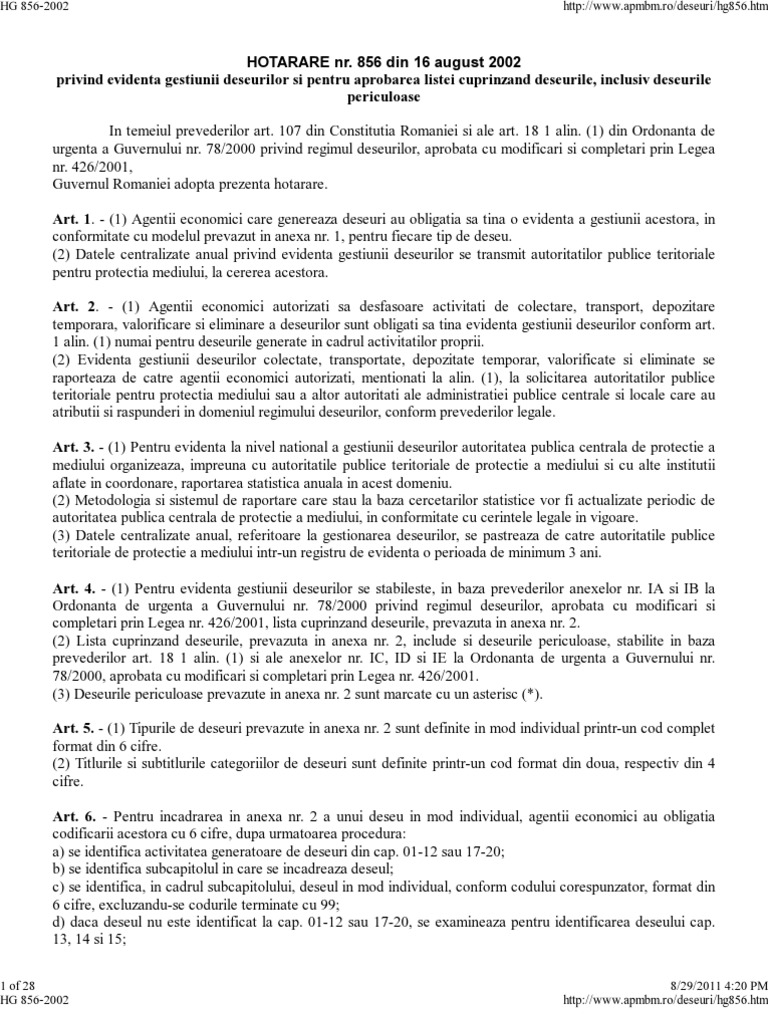 Agentul economic care efectuează operaţia de. 436 din 18 iulie 2001 pentru aprobarea ordonantei de urgenta a guvernului nr. Sau zgomote din surse individuale ori difuze, în aer, apa 78/2000, aprobatã cu modificãri.